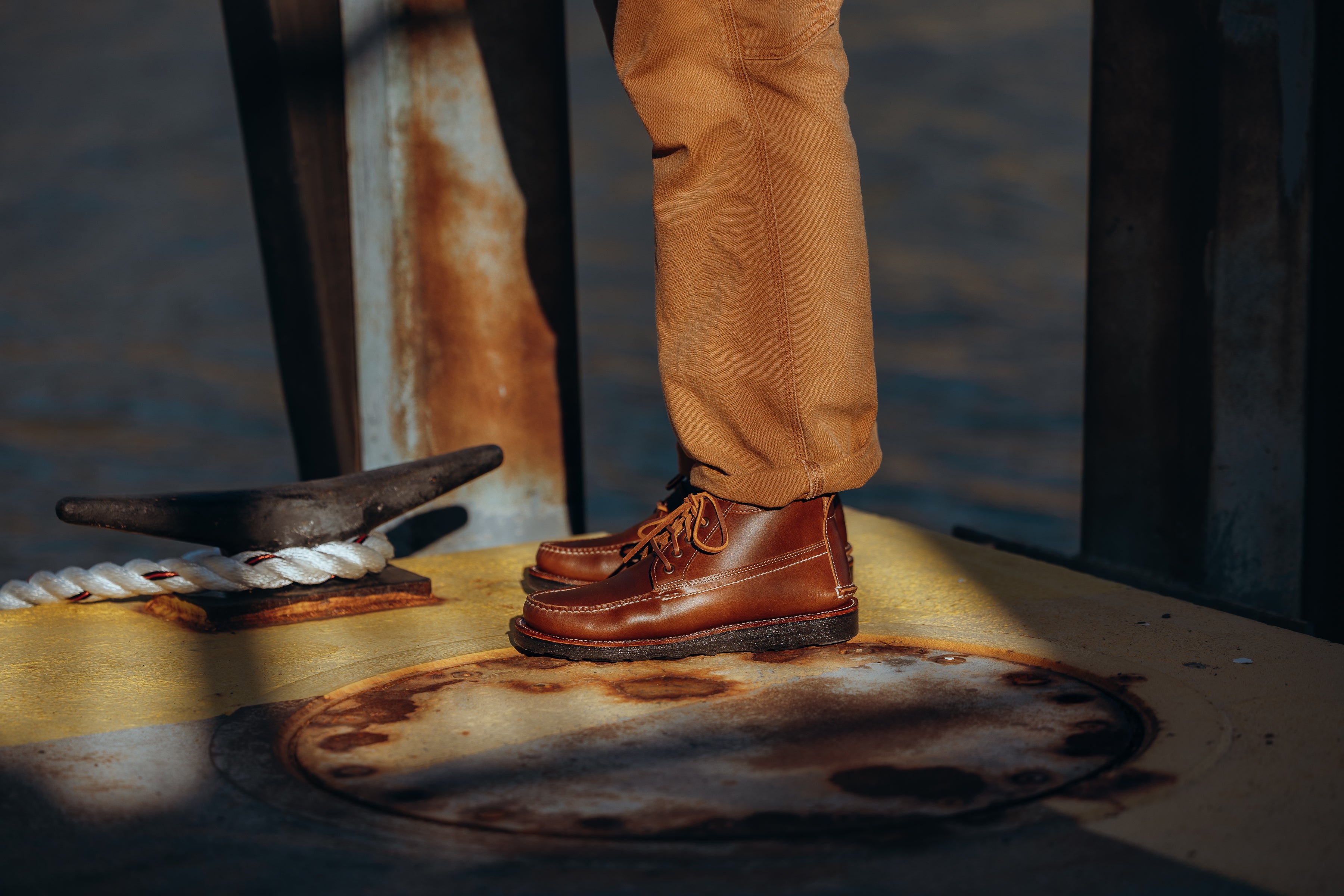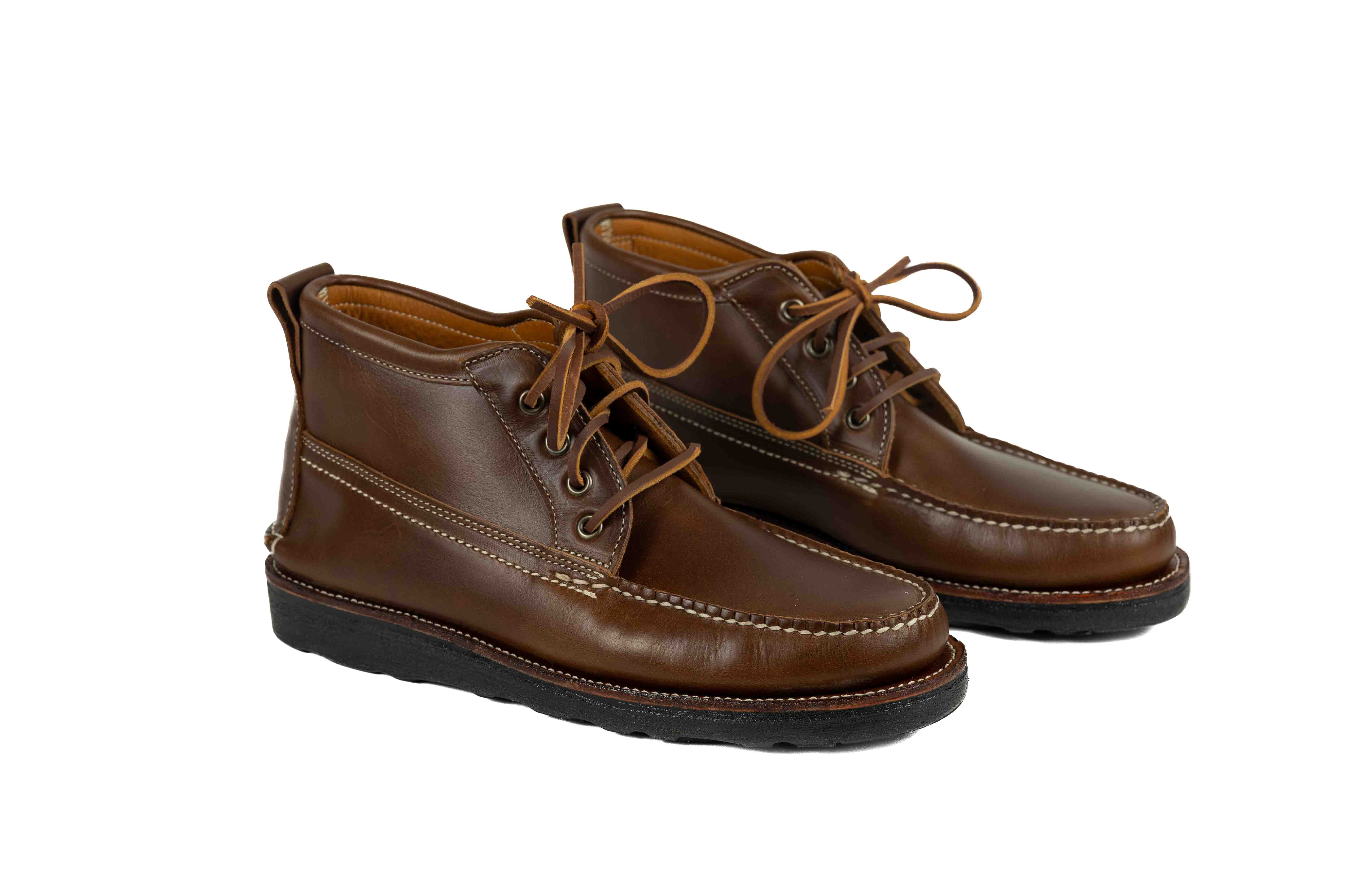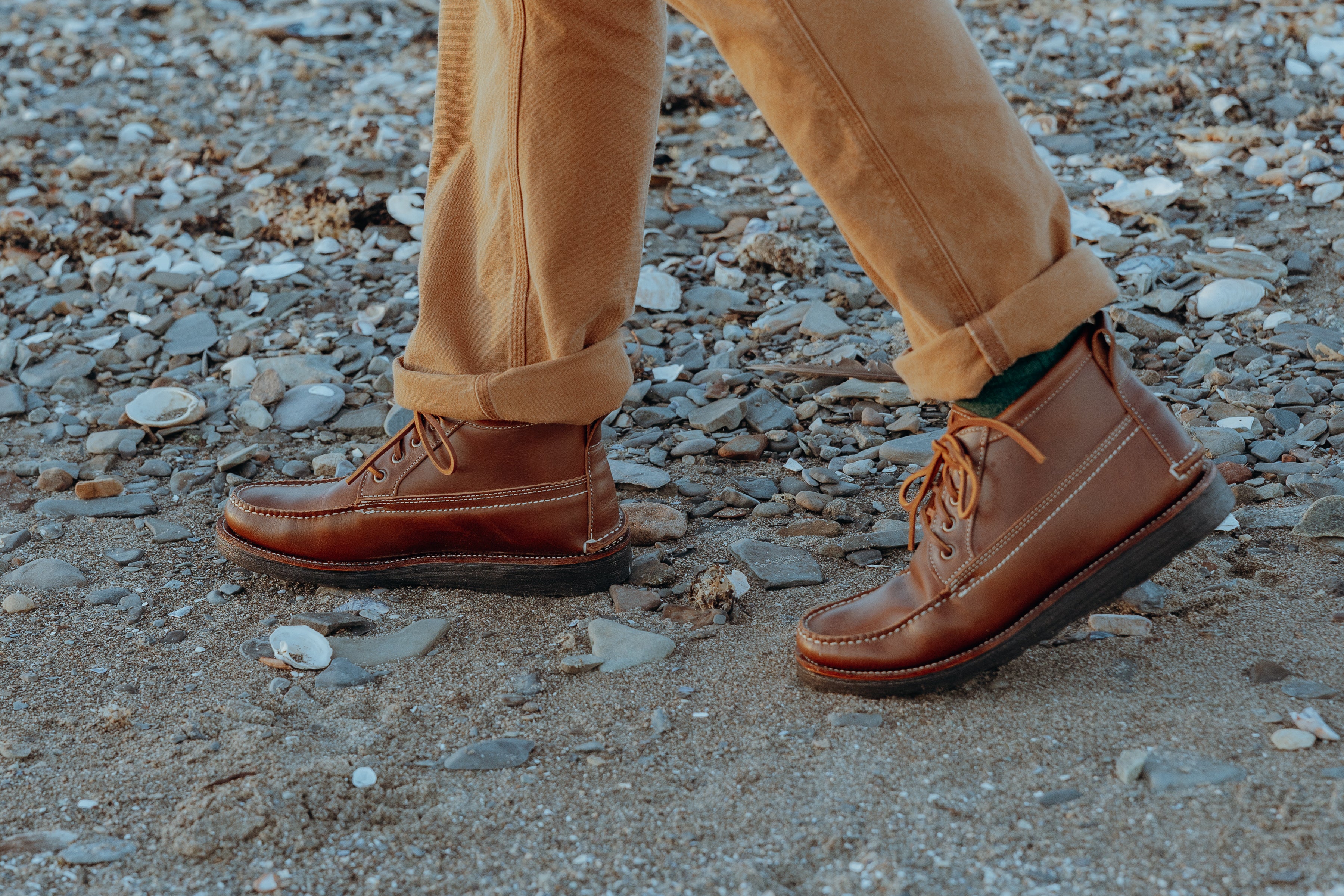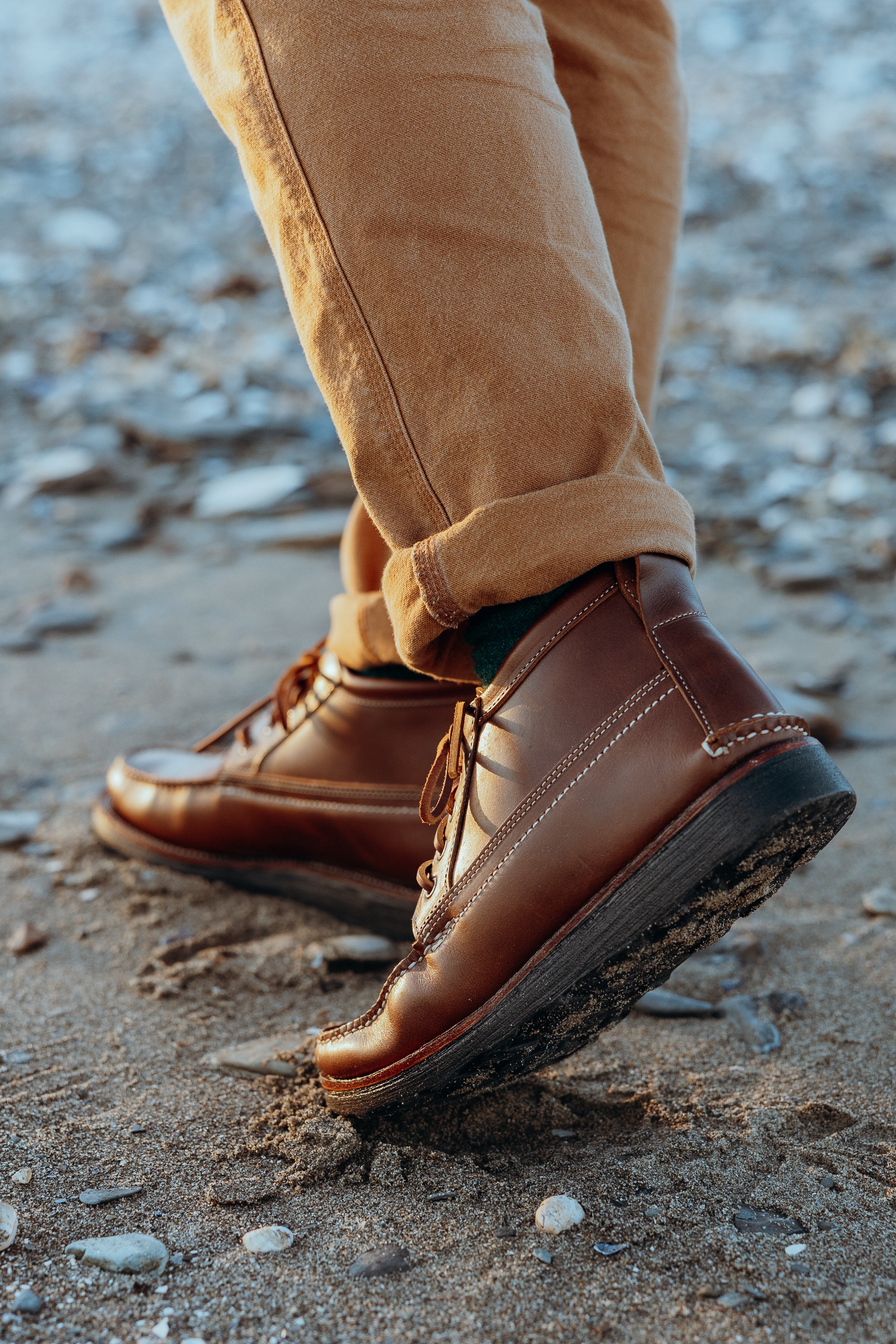 Meet the Trailside Chukka – a perfect fusion of rugged outdoor functionality and timeless style. Crafted to traverse both urban landscapes and untamed trails, these chukka boots are meticulously handmade in the picturesque landscapes of Maine, USA. They're made in very small batches, just the way they should be - handsewn, one at a time, in a small Maine garage by traditional moccasin craftsmen with decades of experience. No corners are cut, from first stitch to last. These are the real deal.